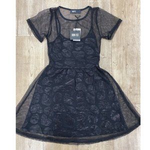 NEW! Iron Fist Skullz Club Mesh Dress. Skull detail dress with spaghetti straps and short sleeve crew neck overlay. Color: Black