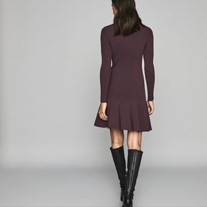 Tick all your social boxes with this luscious bordeaux number. Knitted to a sculptural fit and flare design with raw edges that give it a minimal aesthetic. Add flats and your own belt for a good-girl look or leather jacket with boots for a head-turning option.