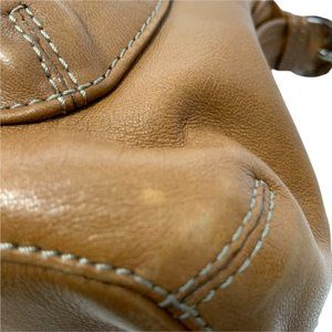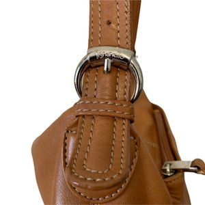 Tignanello Brown Leather Bag Purse Has some staining and wear (photos) Single outside zip pocket Single inside zip pocket Zip Closure Adjustable Strap Measures 7 X 10 X 4