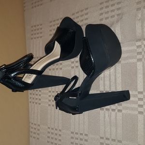 Vegan leather and Vegan suede platform sandals. Never worn. See photos for measurements and size. Soles covered in vegan suede, uppers in vegan leather with texture. Silver buckle and black zipper on the heel. Perfect for prom season! Bundle with 3 or more 💥 items (4 total) and get the bundle for 50% off.