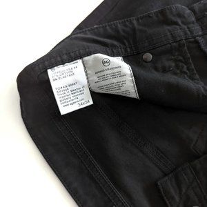 Straight leg silhouette, smooth stretchy velvety cotton blend denim, 5-pocket design, button and zipper fly, belt loops, black hardware. Excellent pre-owned condition. Imported. Cotton Elastane blend. Size 34 is shown as 34 x 34 but inseam is 31; size 36 is shown as 36 x 34 but inseam is 30"