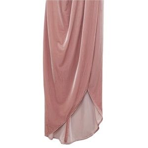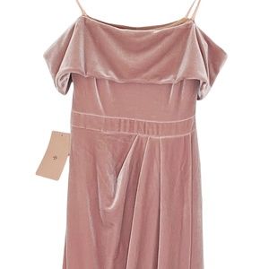 BHLDN Edison velvet dress in Blush from Anthropologie. Crafted from luxe stretch velvet, this dress features a sultry off-the-shoulder neckline and feminine tulip hem. Back zip closure. Body- 90% polyester, 10% elastane. Lining- 100% polyester. In excellent condition (still has tag). Size 2.