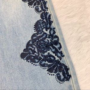 A.Z.I mid rise back floral embroidered blue jeans light wash