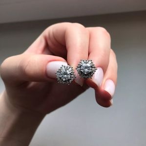 New Silver Geometric Round Diamond Stud Earrings