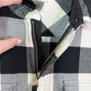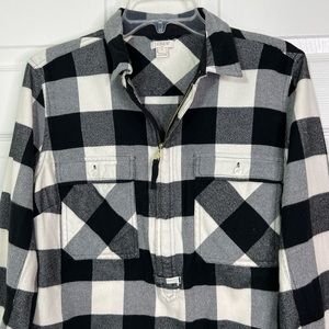 J. Crew Buffalo Plaid Flannel 1/2 Zip Shirt Jacket Black & Ivory