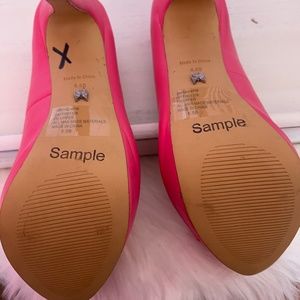 This was a sample pair of VS pink stiletto shoes only worn by sample model in the bld. Size 6 1/2 has the angel wing emblem on the bottom of the shoes.