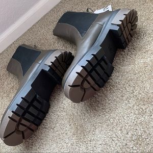 New Zara Chelsea Khaki Leather Ankle Boots Lug Soles Size 7.5 8 9 10 1176/810