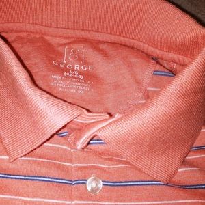 George Coral White and Blue Short Sleeve Mens Polo Style 3 Button Front Shirt