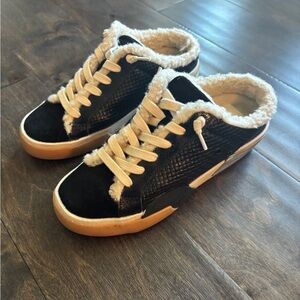 50% acrylic, 45% wool, 5% cashmere. Excellent condition. Has been dry cleaned.