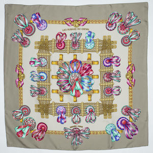 Hermès Scarf Scarf in Gray/Green/Pink 100% Twill Silk and None hardware. The grade condition of the product is: AA which means the product is in Perfect Condition. Dimension: 90*90cm. SKU: AAS0037.