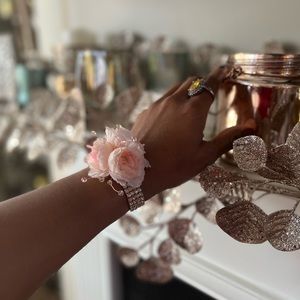 If you’re into stylish yet subtle pieces, this is what you want. This is a stretch bracelet featuring pink floral fabric in 3 D. It is gorgeous and super stretchy. It can be styled with casual, business, or formal attire. Enjoy while it last! Feel free to shop my listings. I add new items weekly.