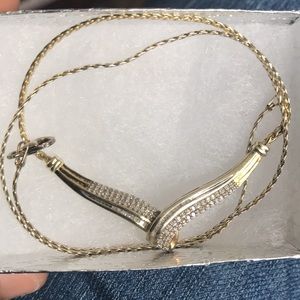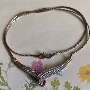 Beautiful Vintage Estate 14kt GF/Sterling Silver Natural .33ctw Diamond Cluster “V” Shape 18” Ladies Necklace. Weighs:8.6g. Marked:925 Italy and signed otc. Gold lightly changing, but that doesn’t change its beauty! Preowned, great condition. Ideal for graduation, weddings, balls & more! Beautiful unique V shape, sparkly & full of dazzle! If you really want this item, please send an offer! I would accept or counteroffer, thank you!