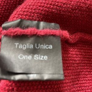 Womens red cashmere sweater. 26 inches from shoulder to the bottom. Rolled finished edge at the bottom. Bought In Italy and only worn once. Super comfy with slouchy fit. It says OS . I would say it would fit more like M/L.