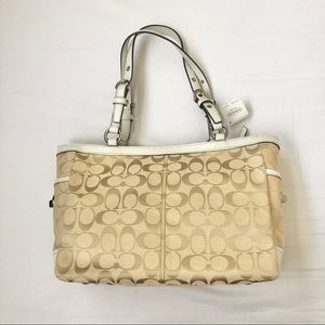 Coach F14281 White/Beige Signature East West Gallery Tote