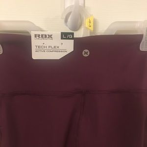 Purple RBX Active leggings with cell phone pockets on each side. Ankle length…Non see-through compression fabric. Size Large…tags still on.