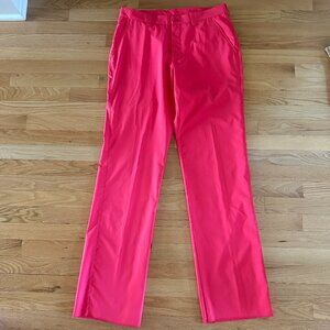 The Royal Standard Red and Tan Canvas Juco Tote. Red greek key pattern. Dual rope-like handles. One section interior with side zipper pocket. Excellent pre-owned condition. Some darker woven threads, but appears to be part of the fabric. One spot on the handles. See the last picture.