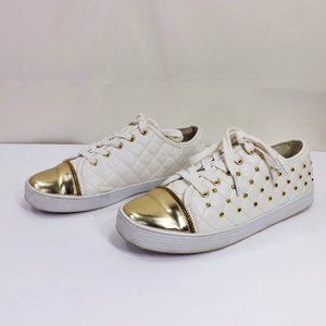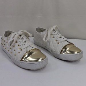 MICHAEL Michael Kors Melbourne Quilted Vegan Leather w Gold Bling Tennis Shoes 5