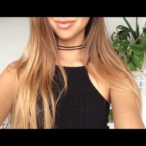 NWT Boho Vintage Black Suede Leather Double Layer Choker Black Necklace