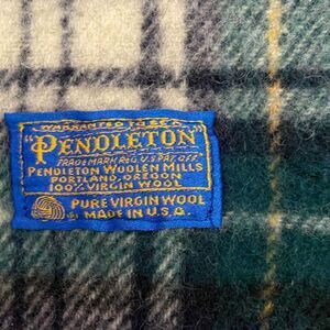 #6230 Pendleton Wool Blue Green Throw Lap Blanket Plaid 60 x 48