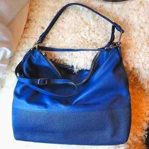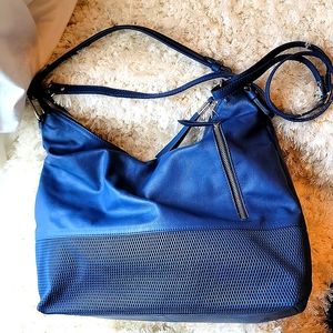 16" across × 13" high × 2 3/4" bottom. Zipper Closure, Zipper pocket on outside 7" deph 6 3/4".Inside pockets as shown in photos. Crossbody Strap is adjustable 29" with great hardware, Shoulder strap