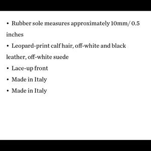 Leopard-print calf hair, suede, and leather. Comes with original box. Selling currently on Net-A-Porter for $600 + tax. (Reflected in original price).