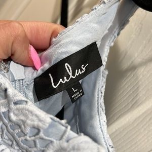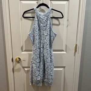 Lulus exclusive! You’ll be collecting notes from secret admirers right and left when you don the Lulus Love Poem Light Grey Lace Mini Dress! A lively pattern of non-stretch crochet floral lace creates an eye-catching overlay atop knit fabric lining. Halter neckline and darted sleeveless bodice transition into a chic, sheath skirt with a mini. Hidden back zipper with clasp.