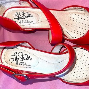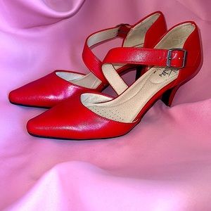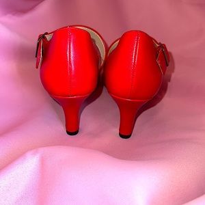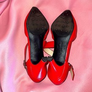 @secnd2n0ne ok so they measure about 2 inch, and Iโm going to assume they are Faux Leather because I could not find any material labels however when I google the brand most the shoes come up as faux leather. These shoes arenโt new however they are in Like New condition barely any signs of wear