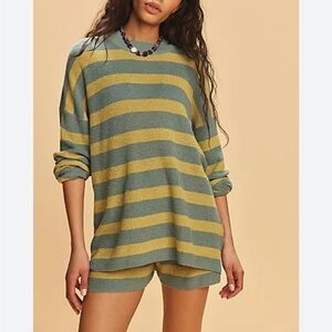 L*space navy blue flashback tie bow front bikini swim top. A beautiful bikini top with a double strap back and a bow front. Brand new with tags