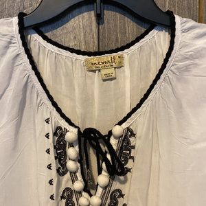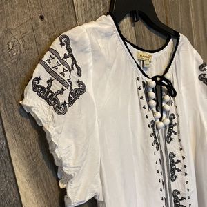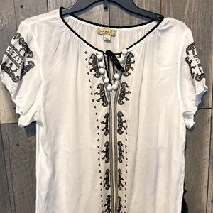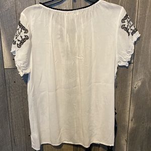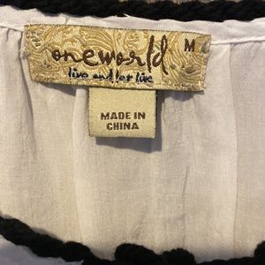 OneWorld Peasant Women’s White and Black Embroidered Top. Size Medium.