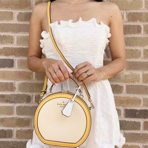 Kate Spade Traveler Canvas Canteen Round Crossbody Yellow Multi Novelty