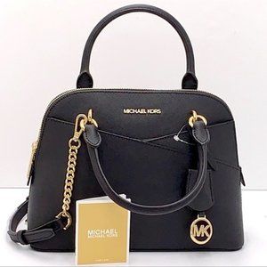 Michael Kors Jet Set Travel Medium Saffiano Leather Dome Satchel Crossbody bag Black