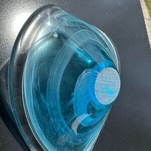 CRISTALLERIA TOSCANA ITALY GLASS CANDY DISH/BOWL BLUE/WHITE/CLEAR 8.5”LONG BEAUTIFUL.