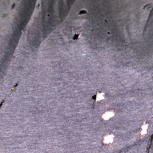 Strategically placed distressing and holes all throughout the body of the top