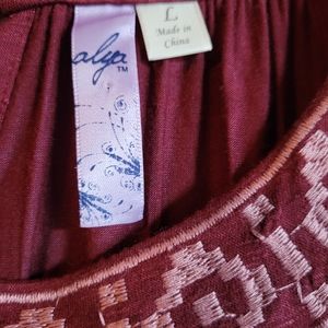 Women's tunic top, 3/4 length sleeve. Size large. Cute keyhole button at the neck in back. Only worn a few times. From Charming Charlie. Color is maroon.