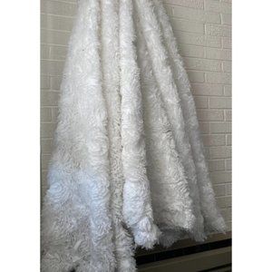 Details: Strapless, Seams, Low Open Back, Back Zipper Closure, Beaded Waistband, Rosette Textured, Sweep Train