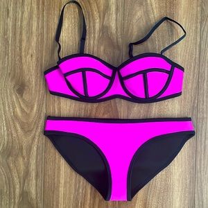 We are Ready for summer with this Neoprene Bikinis. 2 Pieces! Underwire bikini top to give adequate support and adjustable spaghetti straps, sexy cutout V neckline and backless, metal buckle at back. Low waisted bottom Never been used! check my closet for more colors ! Size M