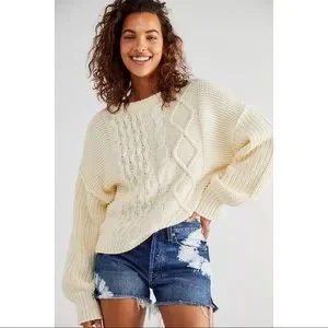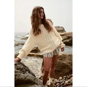 Free People Dream Cable Knit Crewneck Sweater NWT