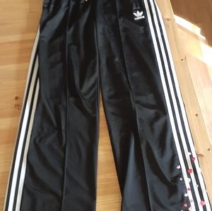 Adidas Limited Edition Women's Wide straight leg track pants with love heart embroidered detail. Love heart waist pull strings.