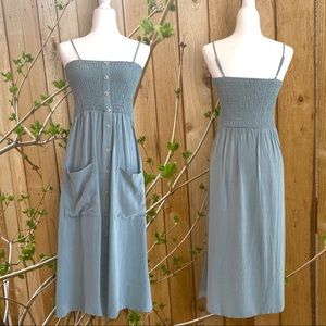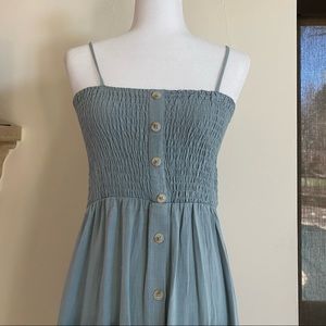 One Clothing Los Angeles Sage Green Smocked Button Down Midi Dress Size L