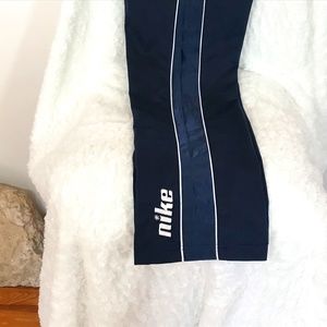 Nike Vintage Dark Blue Youth XL Sport Pant (Fits Women’s Small - US Product) With White Side Stripes. 100% Polyester. Pants Are Silky Soft With A Slight Sheen Creating A Luxurious Look & Feel. Machine Wash & Tumble Dry Low. Only Worn Once & Didn’t Leave Home. Purchased in Las Vegas!