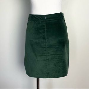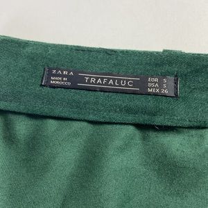 Zara dark green velvet skirt from Trafaluc collection. It’s a classic design that never goes out of style! Size small. No fabric content label but it is cotton velvet. Unlined. Back zip and belt loops. Belt shown not included.