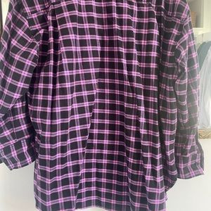Never worn! Size S but definitely oversized. Not super thick flannel, so would be cute for Spring!