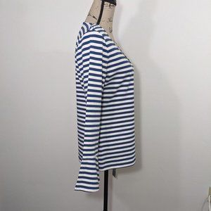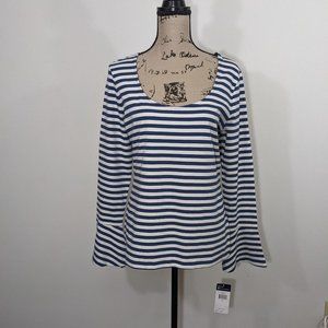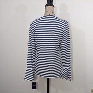 NWT Chaps Women's Shirt Blue & White Stripes Long Bell Sleeve Jersey Knit Size L