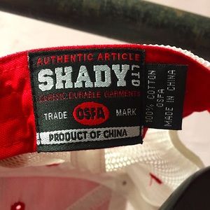 Authentic and vintage Eminem Merch. Shady original hat has a mesh design on the back and a full cloth design on the front. One size fits most. Authentic Eminem Merchandise. Hat is in great condition. Logo patch is actually embroidered on, not just pasted like most logos nowadays. Great piece for Eminem fans.