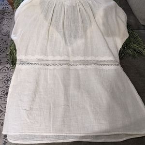 This beautiful Clio Bohemian Top is an essential addition to your wardrobe. The top features a round neck with a keyhole cutout and a bow accent that ties at the front. It is made of 100% cotton gauze fabric that is lightweight, breathable, and sheer. The top has cap sleeves and a comfortable regular fit, perfect for a casual day out or workwear.