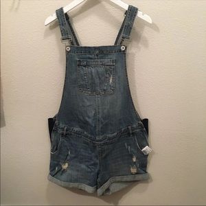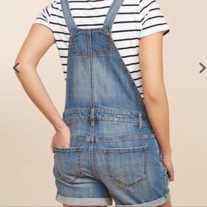 Comfortable and slightly distressed, these denim shortalls take you through all 40+ weeks (thanks adjustable straps). Throw them on over a tee, and you're set!