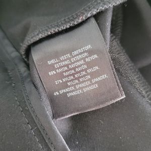 Front zip closure with hook and eye.