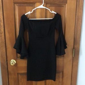 Black bell sleeved cocktail dress. JR sz 3. Mid thigh. Back zip. Worn 1x