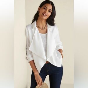Sleeveless chambray denim bohemian romper from American Eagle Outfitters. Lace-up front. Light white pinstripes and a released faded hem. Size XS. Open back secured at the back of the neck with two buttons. 30.5 inches in total length, 16 inches from pit to pit, inseam of about 2.5 inches.
