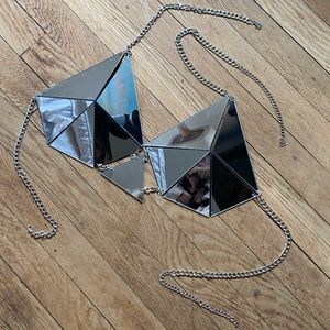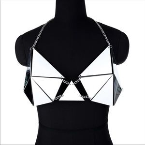Purchased at Screaming Mimis in NYC looks like the Claudia Pink Zenia Bra Top to me❤️with adjustable chain halter and back lobster clasp chain in silver tone. Gorgeous mirror perspex tile link top cute for festivals rave edc club gogo showgirl burlesque cosplay everyday use😉
